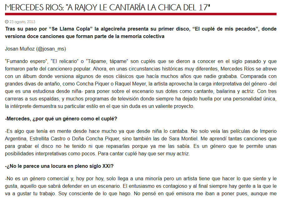 Jose Antonio Muñoz entrevista a Mercedes Ríos para Sevilla Magazine.